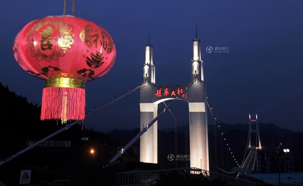 March 30, 2012 late, hunan province aizhai super-large suspension bridge, the engineering personnel to be open to traffic lights to test the bridge, bridge time excessive colour, colorful. March 31,, the hunan province aizhai super-large suspension bridge built will be officially opened to traffic.