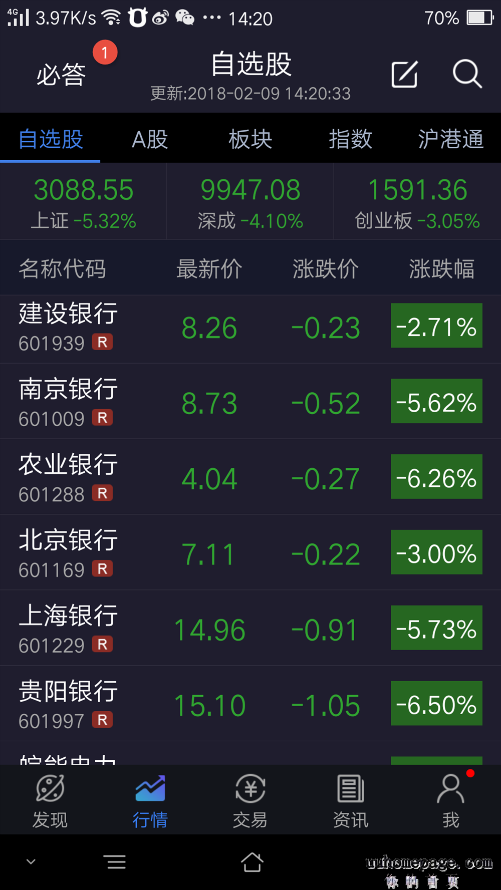 A股银行股大幅下跌,破净银行股:农业银行、浦发银行、交通银行、中信银行。。。。。。。。
