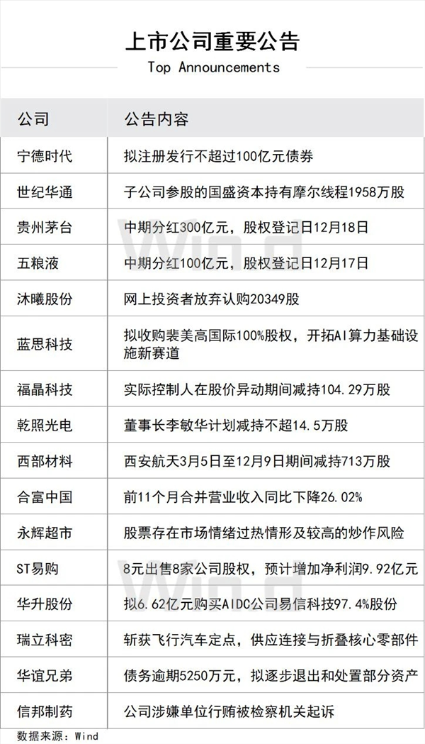 3. 国家统计局:11月CPI同比上涨0.7%,为2024年3月份以来最高,PPI同比下降2.2%,降幅扩大。