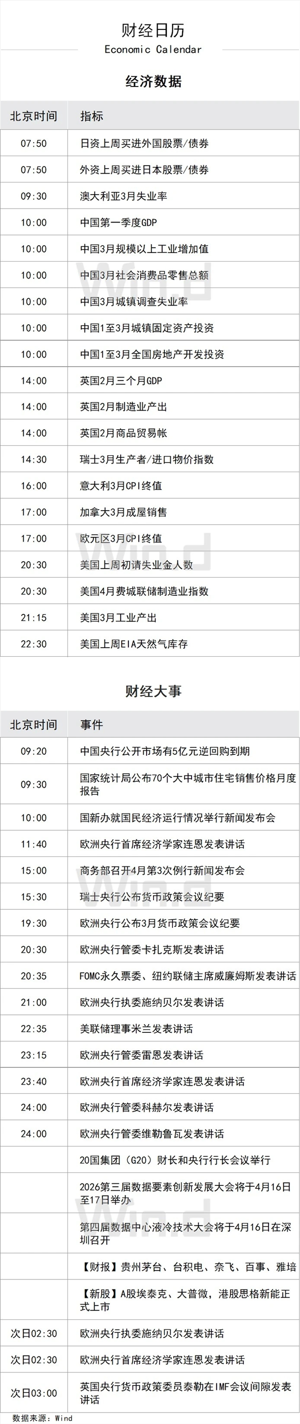 重要经济日程