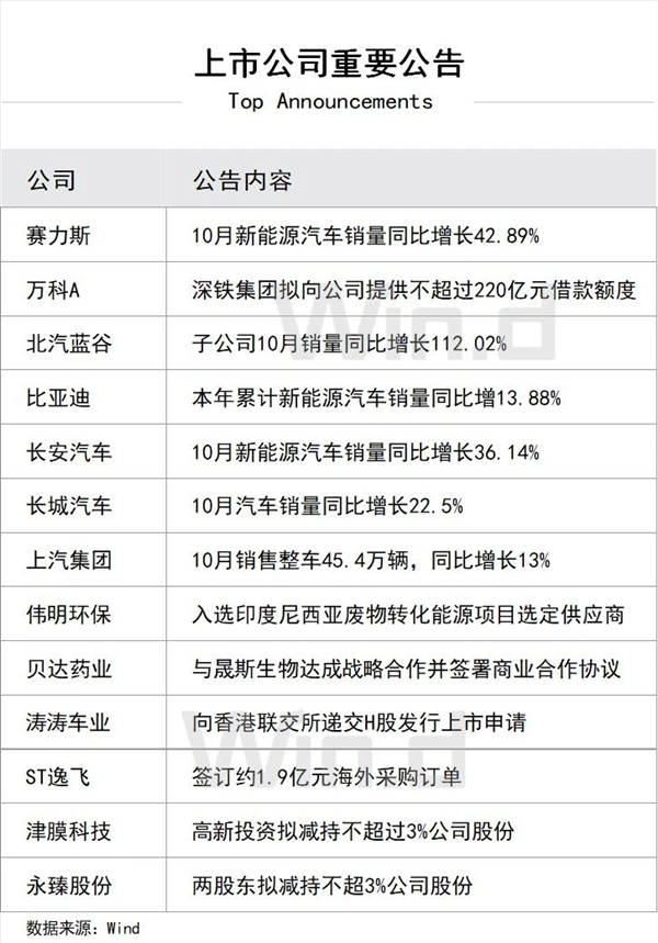 1、乘联分会披露,初步预计10月份新能源汽车零售量预计为132万辆左右,渗透率有望提升至60%左右,或创历史新高。小鹏10月交付4.2万辆创历史新高,1-10月累计交付35.52万辆,同比增幅高达190%;零跑10月交付7.03万辆,同比增长超84%;比亚迪10月新能源汽车销量44.17万辆,前10月累计370.19万辆,同比增长约14%。