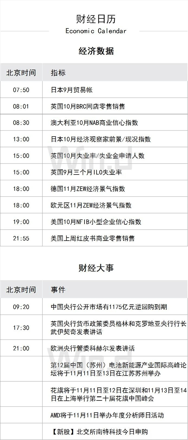 4、美债收益率集体上涨,2年期美债收益率涨2.92个基点报3.591%,3年期美债收益率涨2.57个基点报3.593%,5年期美债收益率涨3.48个基点报3.715%,10年期美债收益率涨2.33个基点报4.116%,30年期美债收益率涨0.78个基点报4.705%。尽管政府停摆带来的数据真空期已结束,但市场仍需等待更多官方数据确认趋势,短期利率波动或持续。