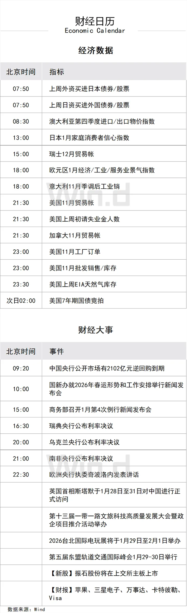 3、德国政府下调2026年经济增长预期,目前预计将增长1%,低于此前预期的1.3%,原因包括基础设施等投资效果不如预期,以及高额关税导致出口持续疲软等。