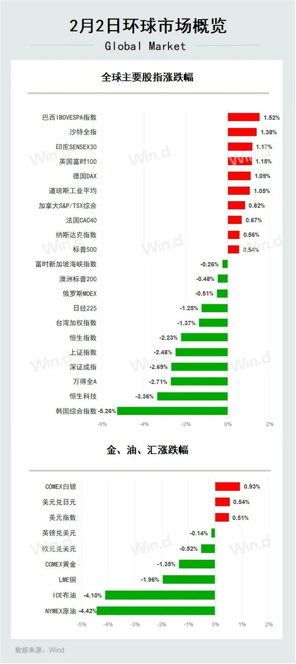 6、美国1月ISM制造业PMI指数升至52.6,远高于预期的48.5,创2022年8月以来新高,主要受新订单和产出稳健增长的提振。