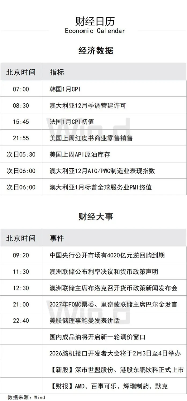 4、美国众议院议长约翰逊表示,有信心在周二前结束美国联邦政府部分停摆。由于美国联邦政府部分“停摆”,美国劳工统计局周五不会发布1月非农就业报告。原定周二披露的12月职位空缺报告也将改期发布。