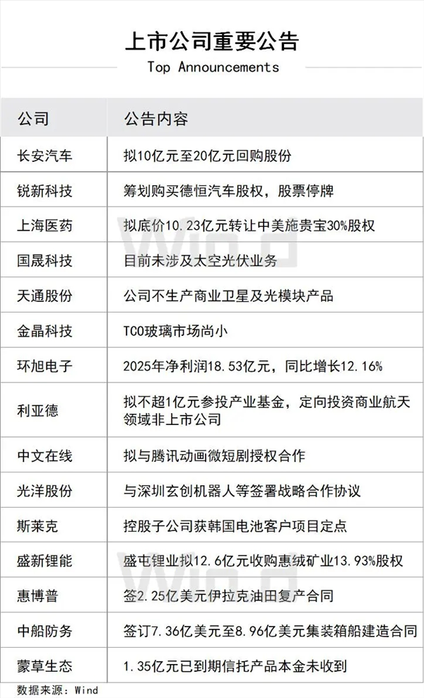 A股光伏概念股集体爆发,晶科能源、泽润新能等十多只股票涨停。晶科能源、高测股份盘后发布公告称,未与相关团队开展任何合作。晶盛机电、双良节能也提示“太空光伏”投资风险。中国光伏行业协会指出,太空光伏技术仍处早期探索阶段,产业化尚不成熟。