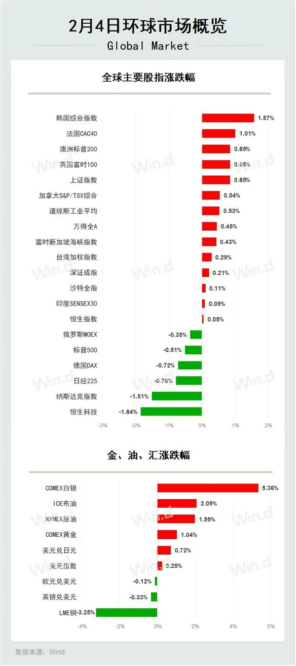6、美国1月ADP新增就业岗位2.2万个,远低于市场预期4.8万人,前值由4.1万下修至3.7万。美国劳工统计局(BLS)宣布,将于2月11日发布1月非农就业报告,将于2月5日发布职位空缺数据,重新安排2月13日发布1月CPI。