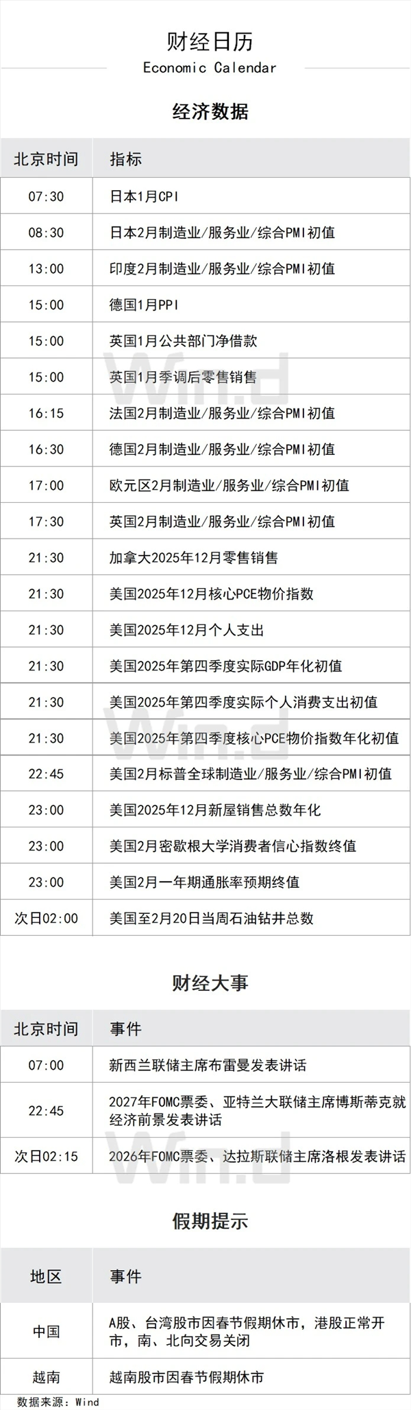 重要经济日程