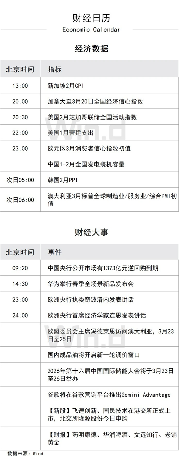 小米、比亚迪等将披露最新财报。国际方面,中东局势仍是全球市场关注的焦点,美伊双方围绕霍尔木兹海峡的博弈持续升级;欧洲多国将进入夏令时,金融市场交易及经济数据公布时间较冬令时提前一小时。
