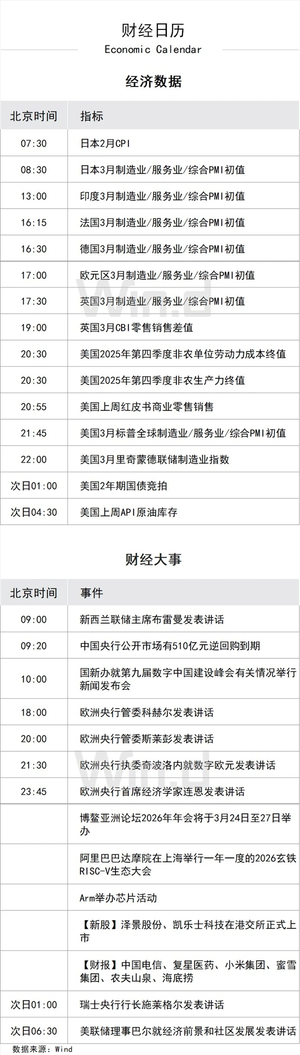 重要经济日程